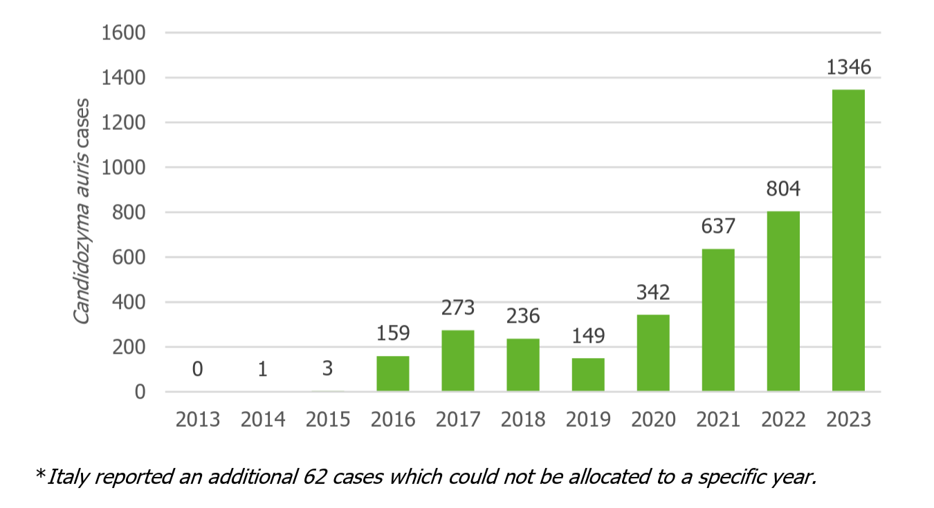 The ECDC believes that these cases, “only reflect the tip of the iceberg”, as surveillance is limited or not in place in many countries. The five countries with the highest recorded C. auris case numbers for 2013–2023 were Spain, Greece, Italy, Romania and Germany.