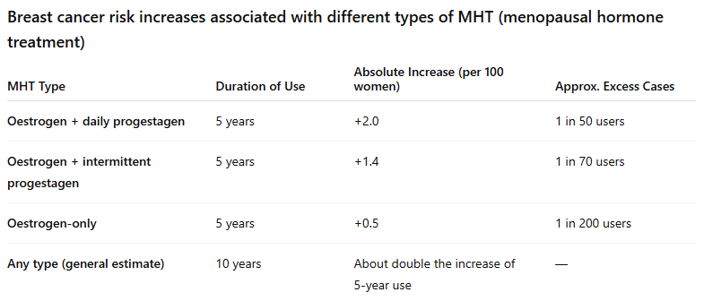 The EU has a different labelling system, where a ‘warnings’ and ‘contraindications’ section is included in a medicine’s product information. The current product information includes the risk of breast cancer and links it to the duration of exposure.